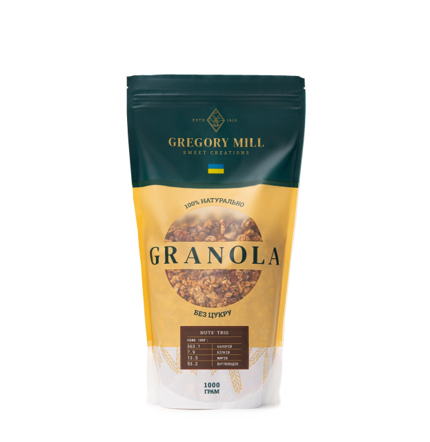 Гранола Gregory Mill Nuts’ Trio - це горіховий мікс, який вражає не лише смакові рецептори, але й забезпечує ваш організм потужним зарядом енергії та користі. Створена для справжніх гурманів, які цінують вишуканість смаку та піклуються про здоров’я.